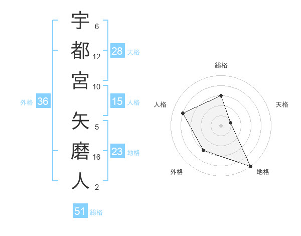 宇都宮 矢磨人さんの総格は51画の3点!