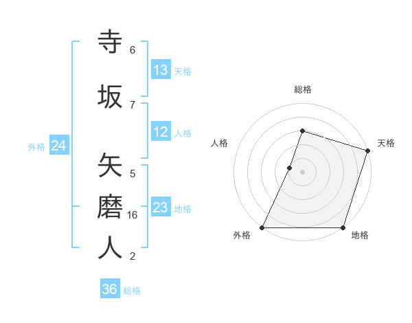 寺坂 矢磨人さんを姓名の画数から五運を鑑定