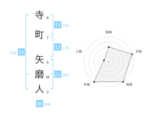 寺町 矢磨人さんの外格は24画の5点!