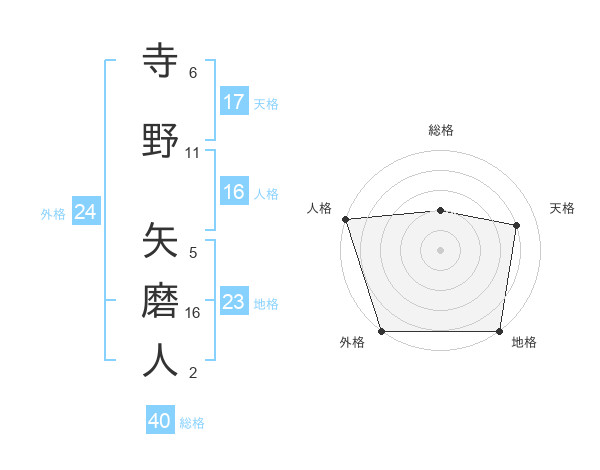 寺野 矢磨人さんの外格は24画の5点!