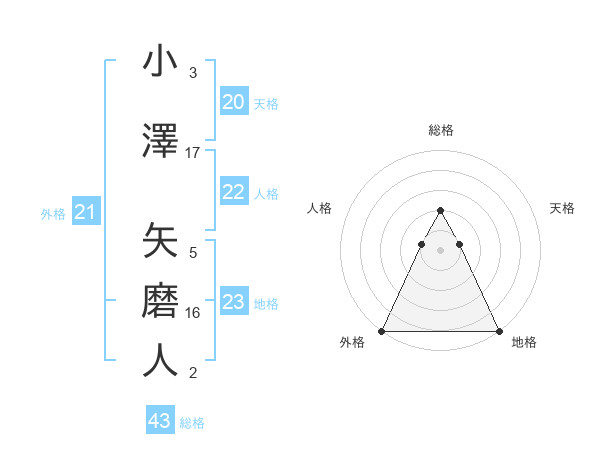 小澤 矢磨人さんの外格は21画の5点!