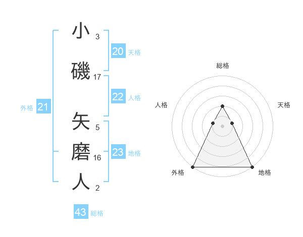 小磯 矢磨人さんを姓名の画数から五運を鑑定