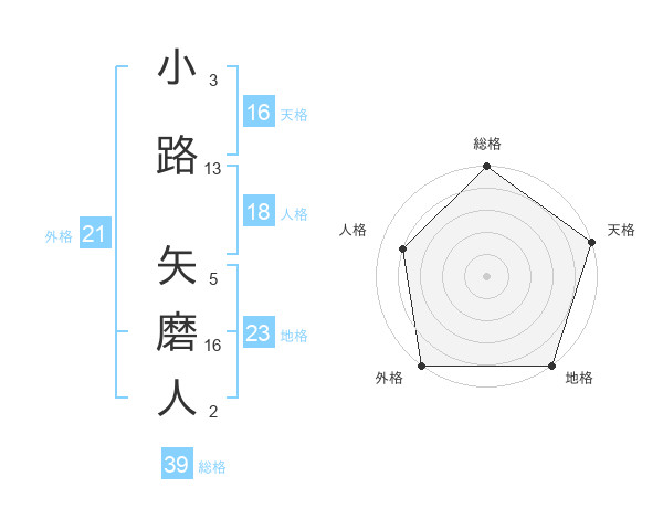 小路 矢磨人さんの総格は39画の5点!
