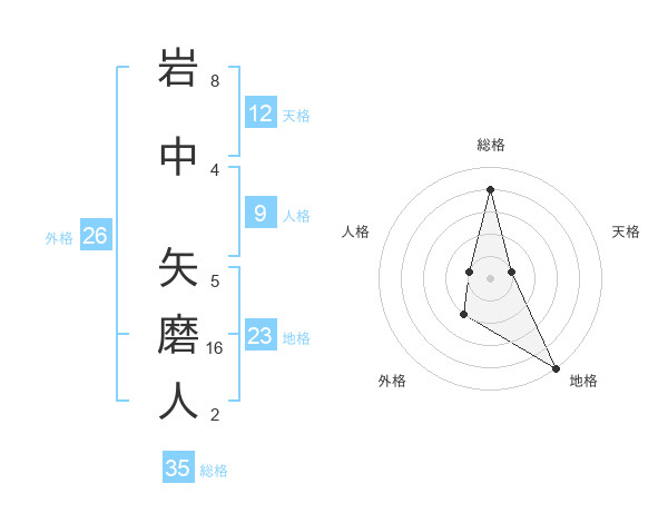 岩中 矢磨人さんの総格は35画の4点!
