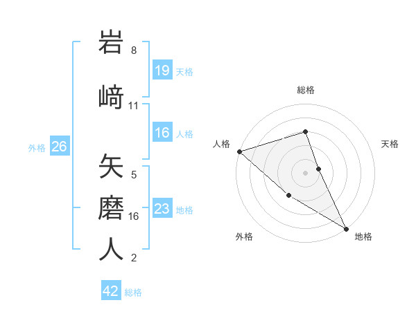 岩﨑 矢磨人さんを姓名の画数から五運を鑑定