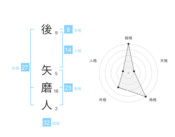 後 矢磨人さんの総格は32画の5点!