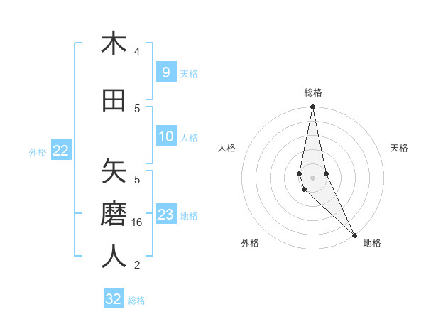 木田 矢磨人さんを姓名の画数から五運を鑑定