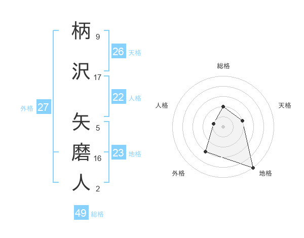 柄沢 矢磨人さんを姓名の画数から五運を鑑定