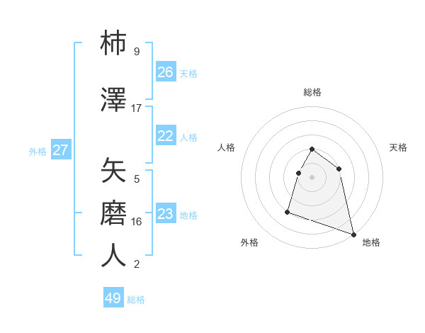 柿澤 矢磨人さんの総格は49画の2点!