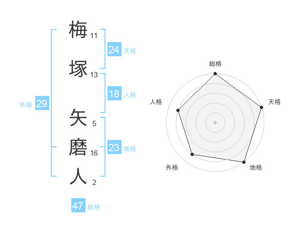 梅塚 矢磨人さんを姓名の画数から五運を鑑定