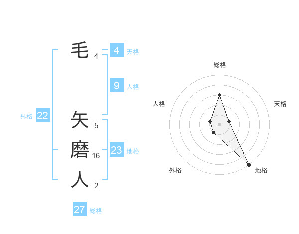 毛 矢磨人さんの総格は27画の3点!