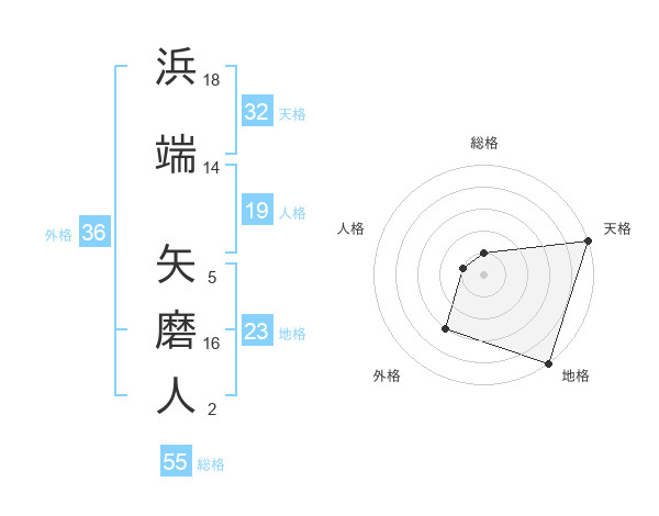 浜端 矢磨人さんの天格は32画の5点!
