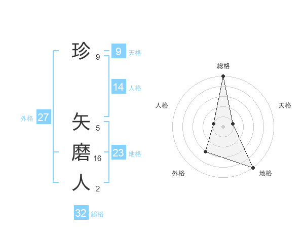 珍 矢磨人さんの総格は32画の5点!