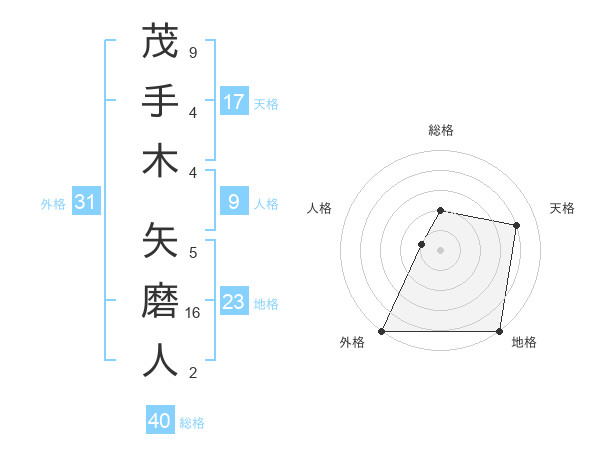茂手木 矢磨人さんの外格は31画の5点!