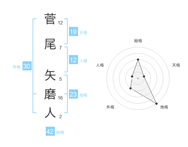 菅尾 矢磨人さんの地格は23画の5点!