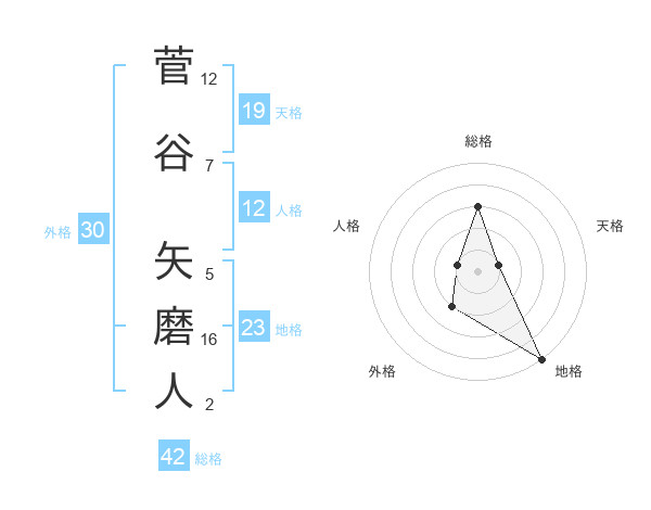 菅谷 矢磨人さんの総格は42画の3点!
