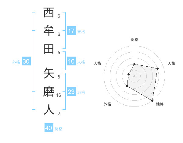 西牟田 矢磨人さんの地格は23画の5点!