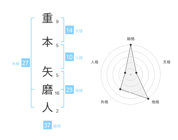 重本 矢磨人さんを姓名の画数から五運を鑑定