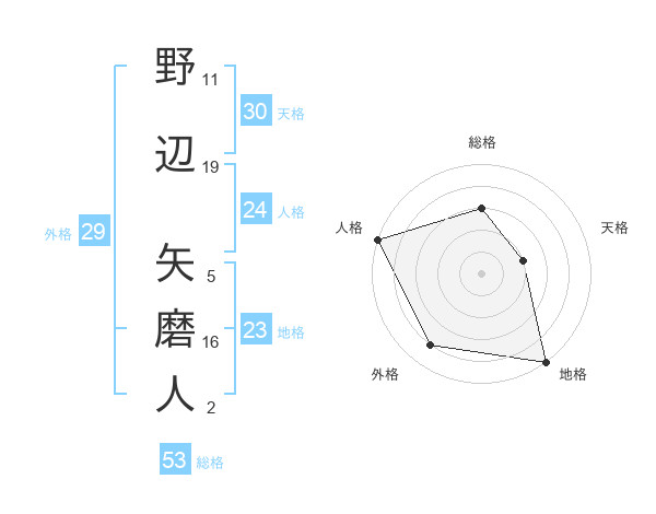 野辺 矢磨人さんの総格は53画の3点!