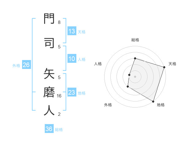 門司 矢磨人さんを姓名の画数から五運を鑑定