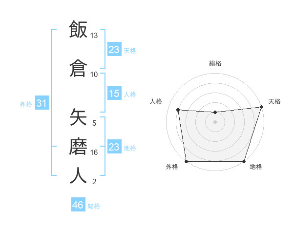 飯倉 矢磨人さんの地格は23画の5点!