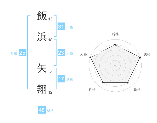 飯浜 矢翔さんの天格は31画の5点!