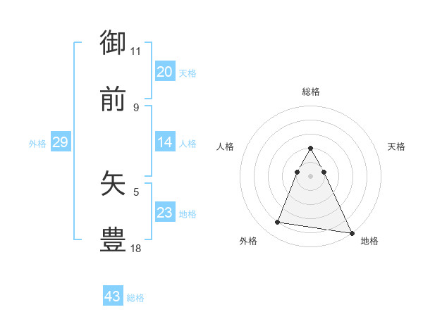 御前 矢豊さんの総格は43画の2点!