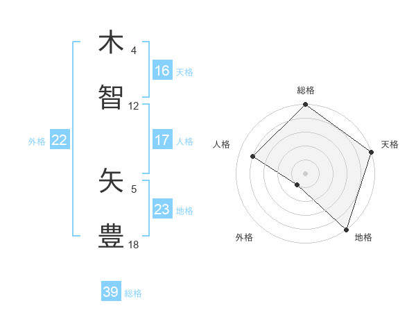 木智 矢豊さんを姓名の画数から五運を鑑定