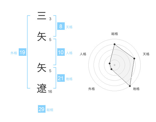 三矢 矢遼さんの地格は21画の5点!