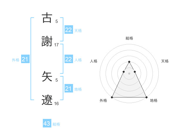 古謝 矢遼さんを姓名の画数から五運を鑑定