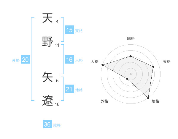 天野 矢遼さんを姓名の画数から五運を鑑定