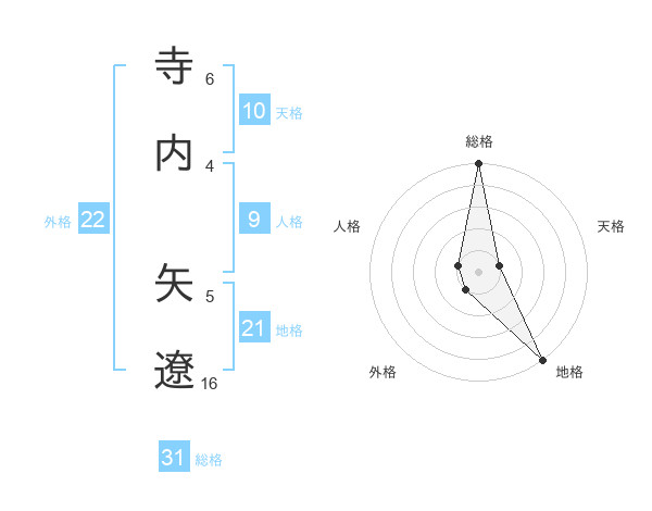 寺内 矢遼さんの総格は31画の5点!