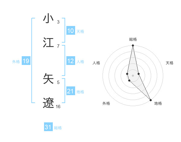 小江 矢遼さんの総格は31画の5点!