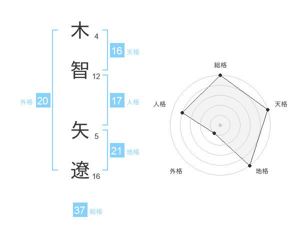 木智 矢遼さんの天格は16画の5点!