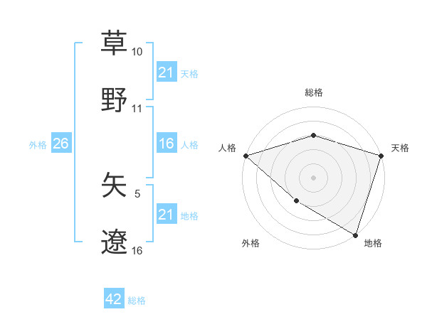 草野 矢遼さんを姓名の画数から五運を鑑定