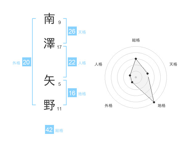 南澤 矢野さんの総格は42画の3点!