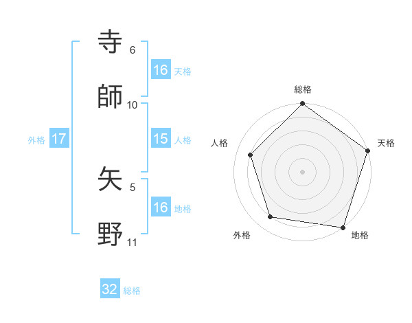 寺師 矢野さんの総格は32画の5点!