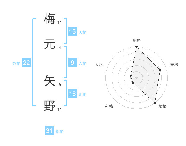 梅元 矢野さんを姓名の画数から五運を鑑定