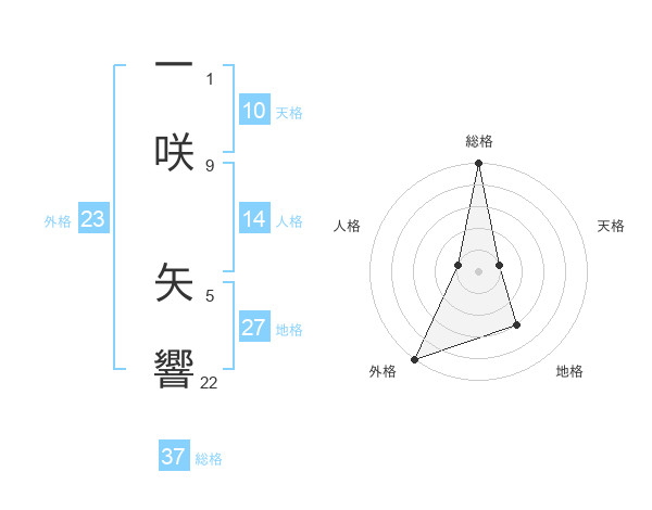 一咲 矢響さんの総格は37画の5点!