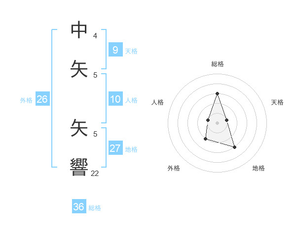 中矢 矢響さんの総格は36画の3点!