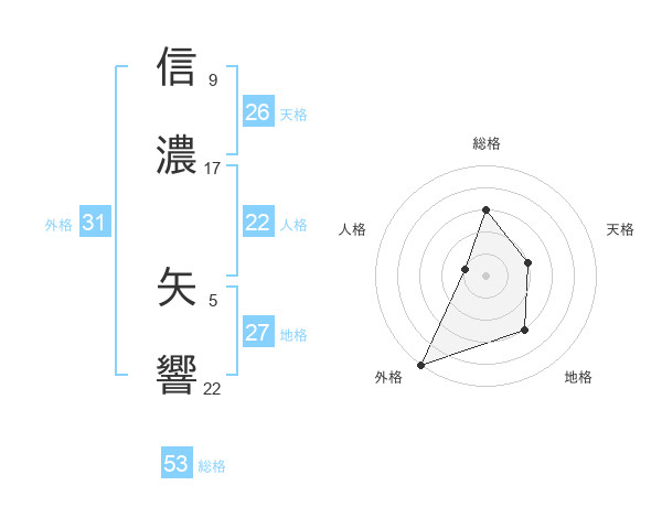 信濃 矢響さんを姓名の画数から五運を鑑定