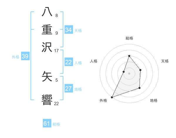 八重沢 矢響さんを姓名の画数から五運を鑑定