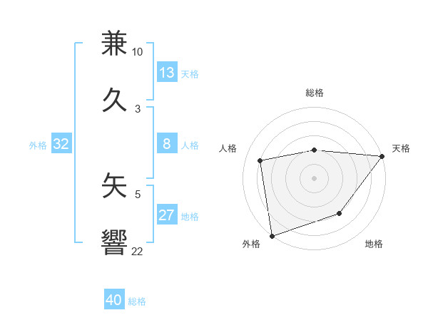 兼久 矢響さんを姓名の画数から五運を鑑定