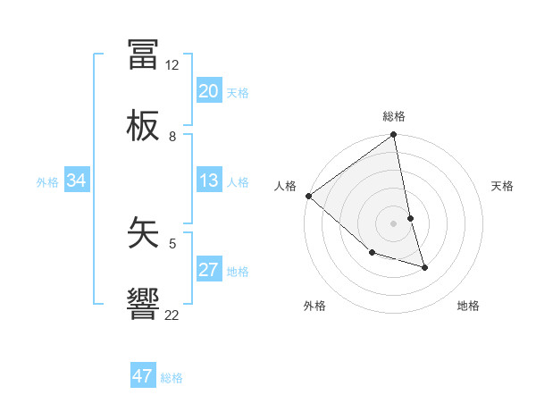冨板 矢響さんを姓名の画数から五運を鑑定