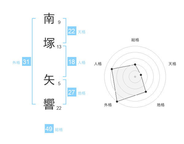南塚 矢響さんの総格は49画の2点!