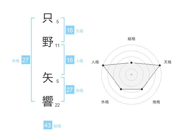 只野 矢響さんの人格は16画の5点!