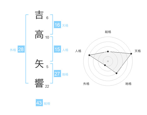 吉高 矢響さんを姓名の画数から五運を鑑定