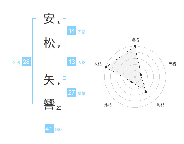 安松 矢響さんの総格は41画の5点!
