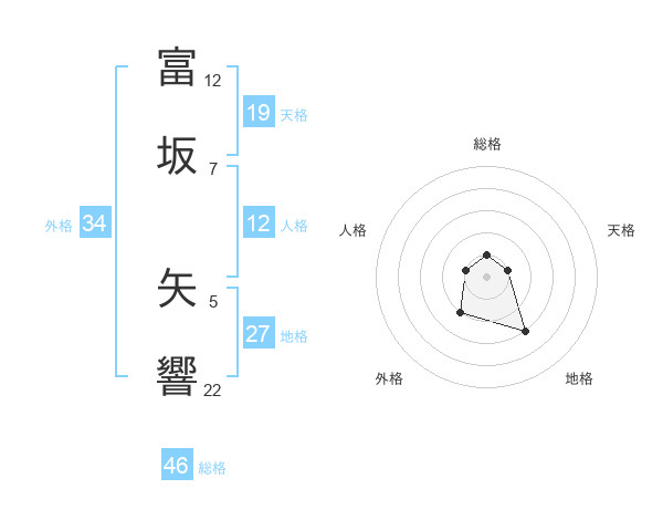 富坂 矢響さんを姓名の画数から五運を鑑定