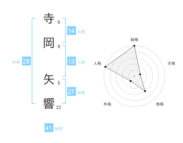 寺岡 矢響さんを姓名の画数から五運を鑑定